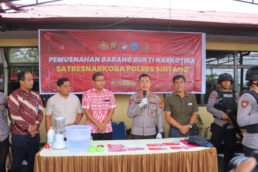 Polres Sintang menggelar press release kasus tindak pidana narkotika sekaligus pemusnahan barang bukti pagi hari ini, Jumat (26/5).
