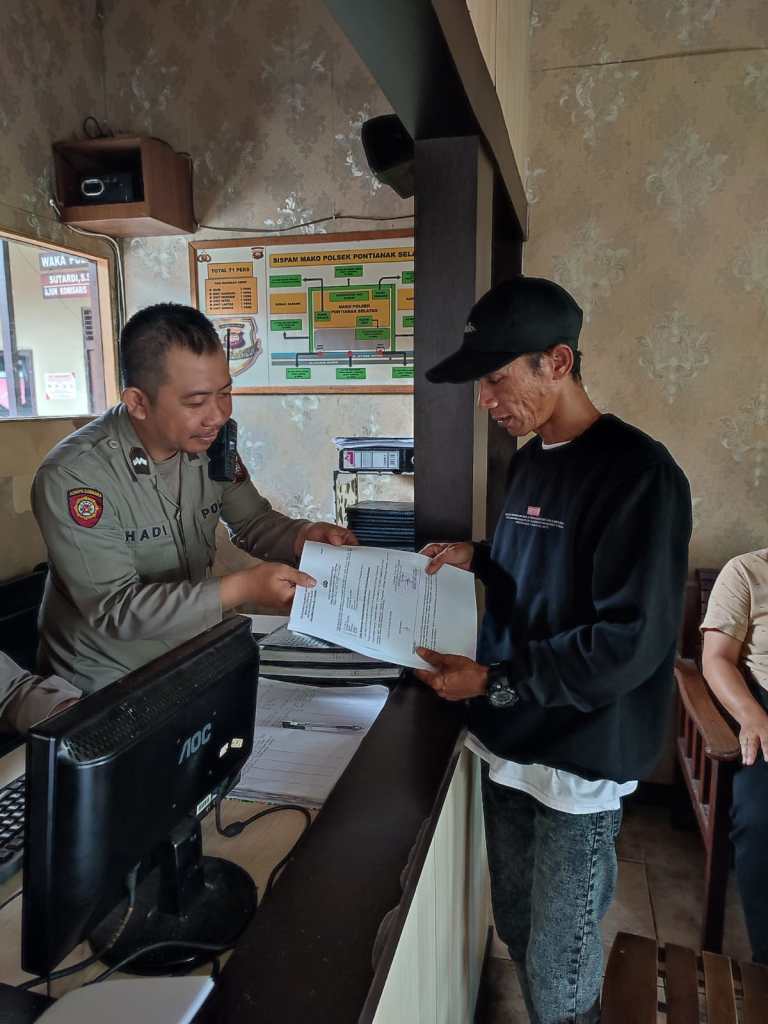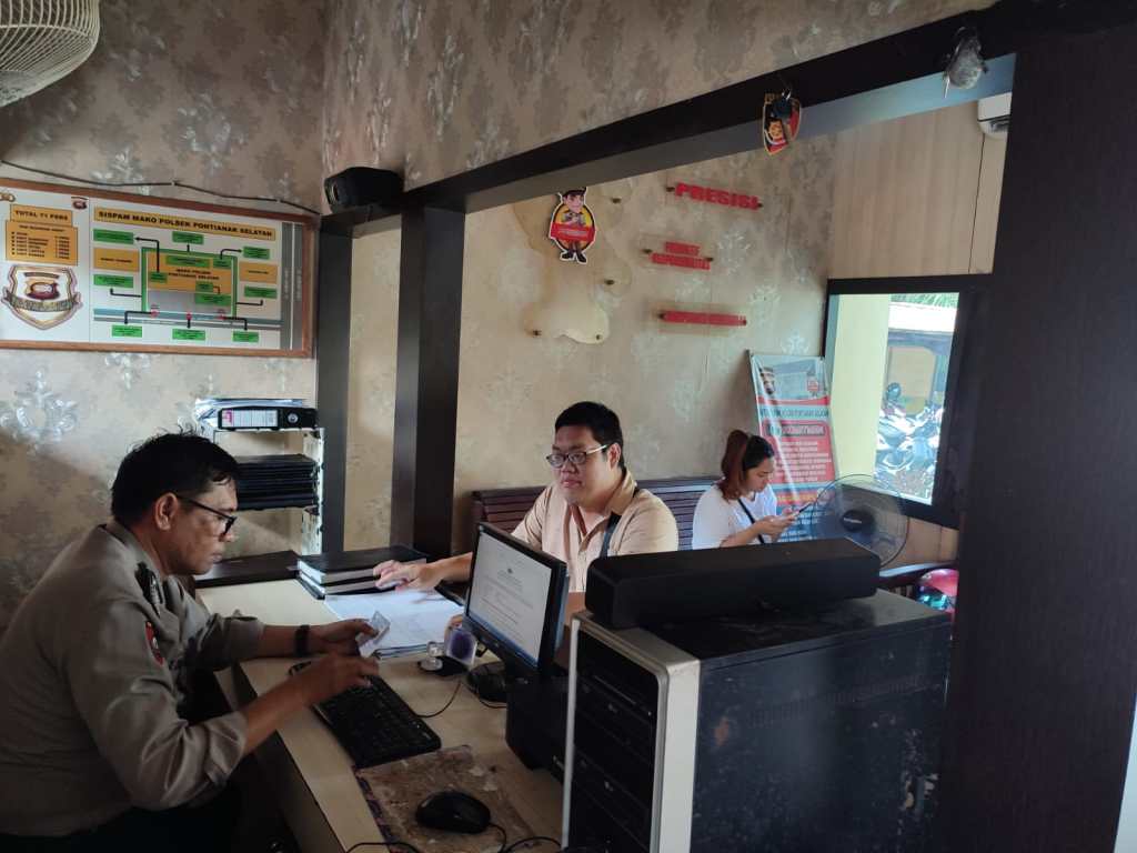 Pontianak, Kalbar – SPKT Polsek Pontianak Selatan memberikan pelayanan kepada masyarakat yang membuat laporan ataupun pengaduan gangguan kamtibmas dan laporan kehilangan surat – surat penting di ruang pelayanan Polsek Pontianak Selatan secara humanis, Senin, 05/06/2023.