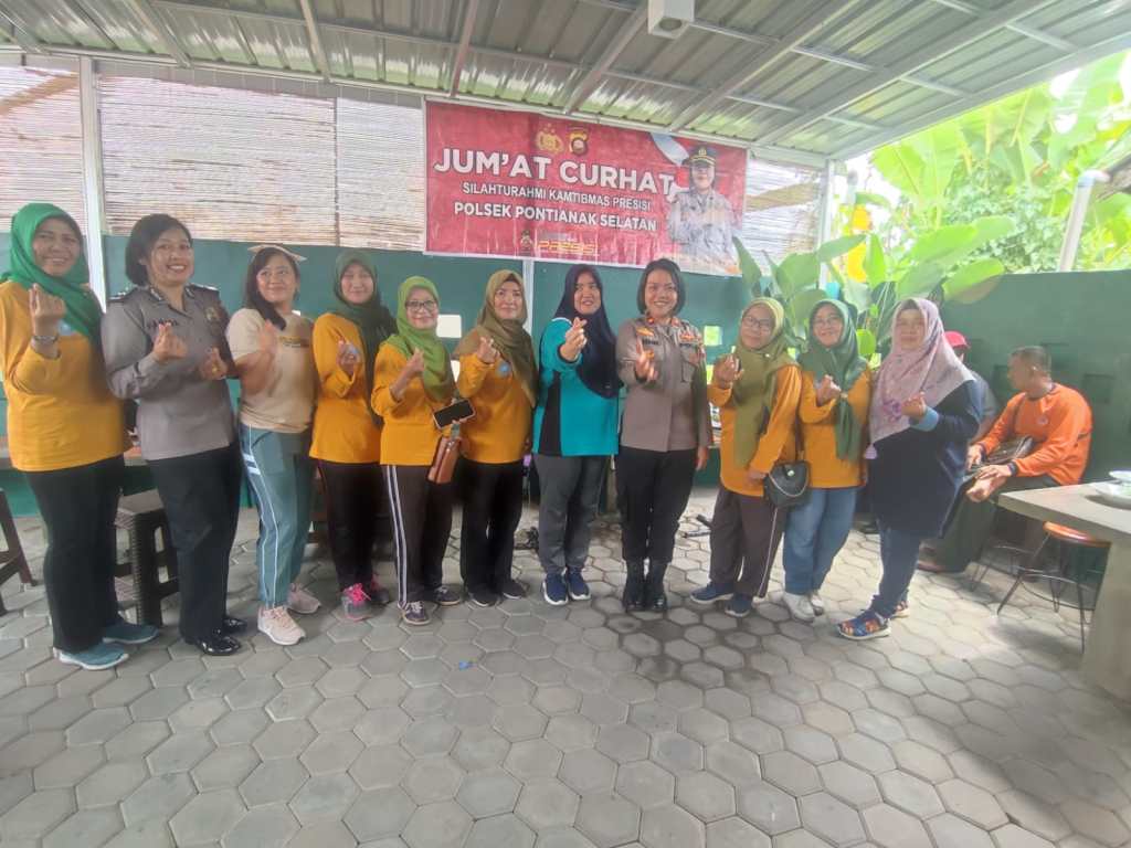 PONTIANAK, KALBAR – Kapolsek Pontianak Selatan Kompol Anne Tria Sefyna, S.H.,S.I.K kali ini Jum’at curhat dilaksankan dengan Silaturahmi dengan Ibu – Ibu PKK Kelurahan Kota Baru Kecamatan Pontianak Tenggata yang dilaksanakan di Cafe Osamu Jalan Kesehatan Pontianak Tenggara, Jum’at, 09 Juni 2023.