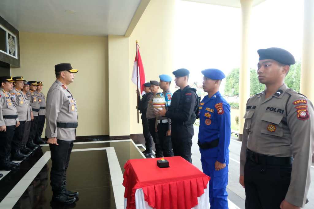 PONTIANAK, POLDA KALBAR- Wakapolda Kalbar Brigjen Pol Asep Safrudin, S.IK., M.H. memimpin acara tradisi pemberangkatan pasukan dalam rangka pengambilan air suci sebagai rangkaian pemulyaan terhadap nilai-nilai Tribrata di lobby Mapolda Kalbar pada hari Senin (12/6).