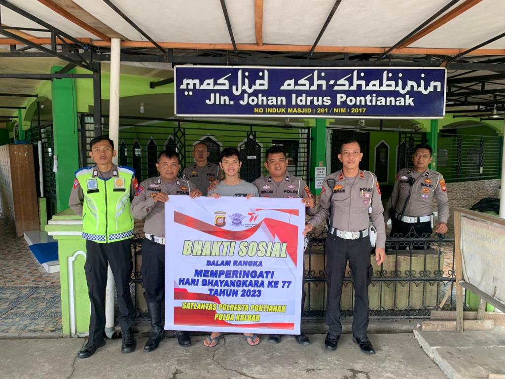 Kapolresta Pontianak melalui Wakasat Lantas AKP Eka Suwarna sebagai seksi Bhakti sosial Mengatakan, “Pagi ini kita melaksanakan kegiatan kerja bhakti membersihkan dan menyerahkan peralatan kebersihan di dua masjid,masjid Al jihad di jl. Johan Idrus dan masjid Al Asshabirin di jl. M. Sohor Pontianak selatan.Tuturnya.