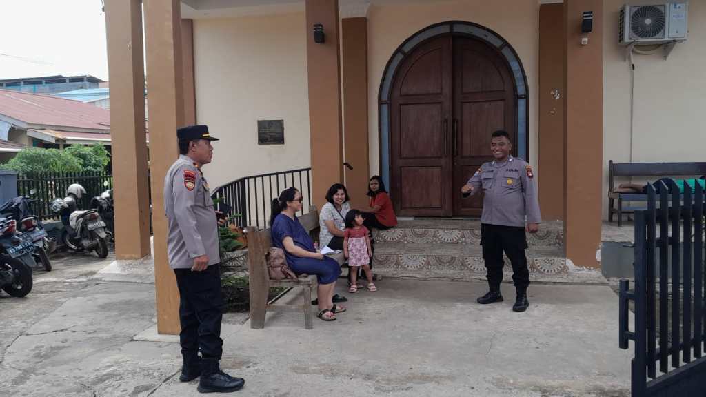 PONTIANAK, KALBAR – Polsek Pontianak Timur Pawas Kanit Sabhara Ipda Sri Awali beserta Anggota lainnya melaksanakan Kegiatan Rutin Yang Ditingkatkan dengan melaksanakan pengamanan jemaah ibadah Minggu secara rutin. Minggu (18/06/2023).