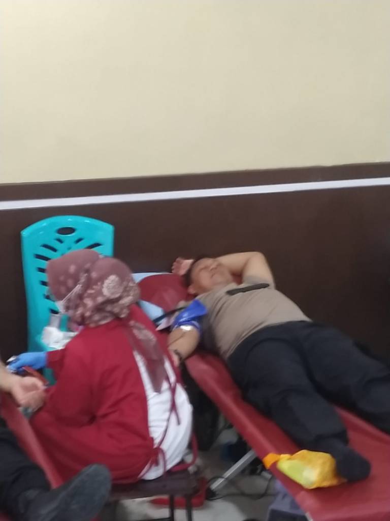 Aksi donor darah yang dilaksanakan bekerjasama dengan Palang Merah Indonesia (PMI) Kota Pontianak ni diikuti oleh para personel Polresta dan Polsek Jajaran Polresta Pontianak.