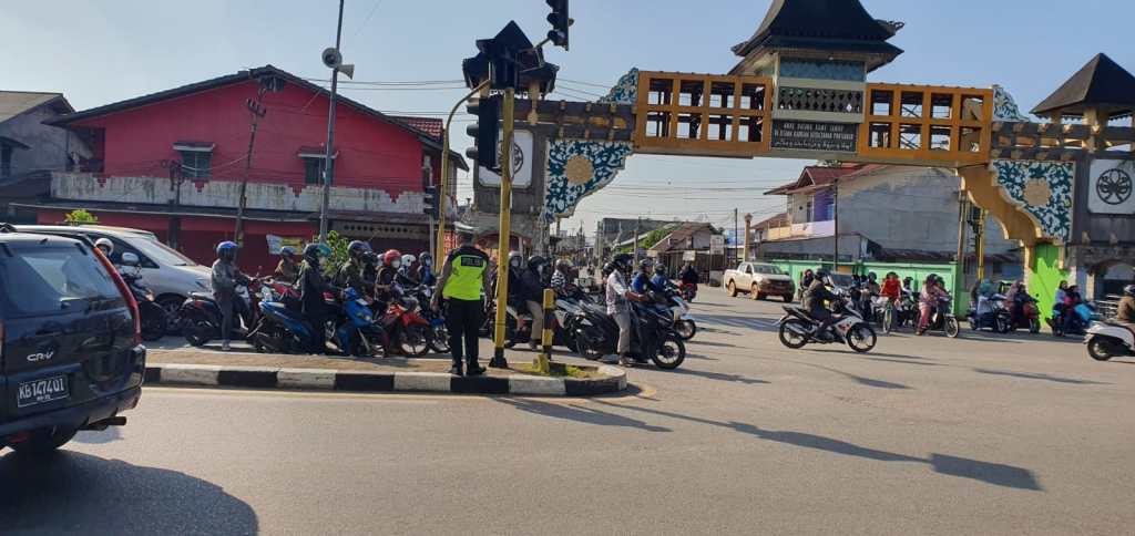 PONTIANAK, KALBAR – Personil Lantas Polsek Pontianak Timur selalu hadir ditengah-tengah masyarakat dengan memberikan pelayanan prima kepolisian, salah satunya dengan melakukan pengamanan dan pengaturan arus lalu lintas, demi kelancaran dan kenyamanan pengguna jalan serta meminimalisir terjadinya kecelakaan berlalu lintas. Senin (26/06/2023) Pukul 0630 Wib.