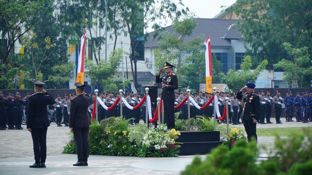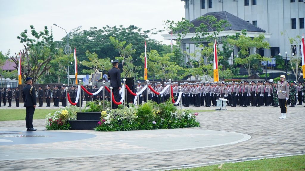 Upacara Peringatan Hari Bhayangkara Ke-77 dipimpin secara langsung oleh Kapolda Kalbar Irjen Pol Pipit Rismanto, S.I.K., M.H. Dengan tema “Polri Presisi Untuk Negeri, Pemilu Damai Menuju Indonesia Maju”.