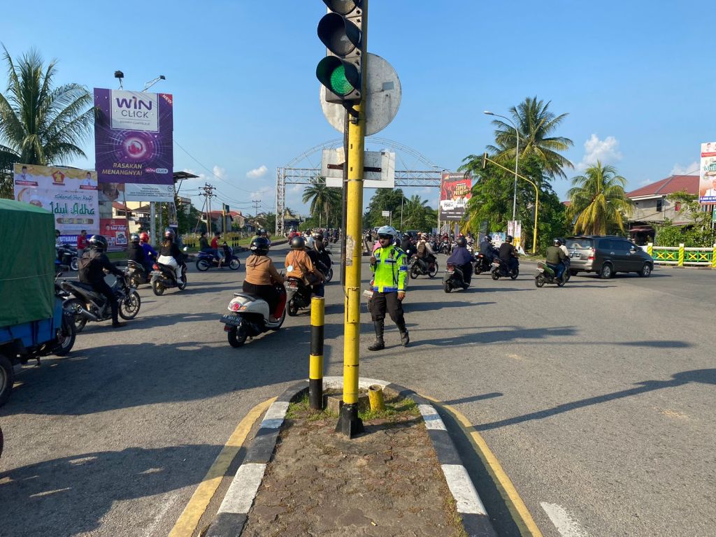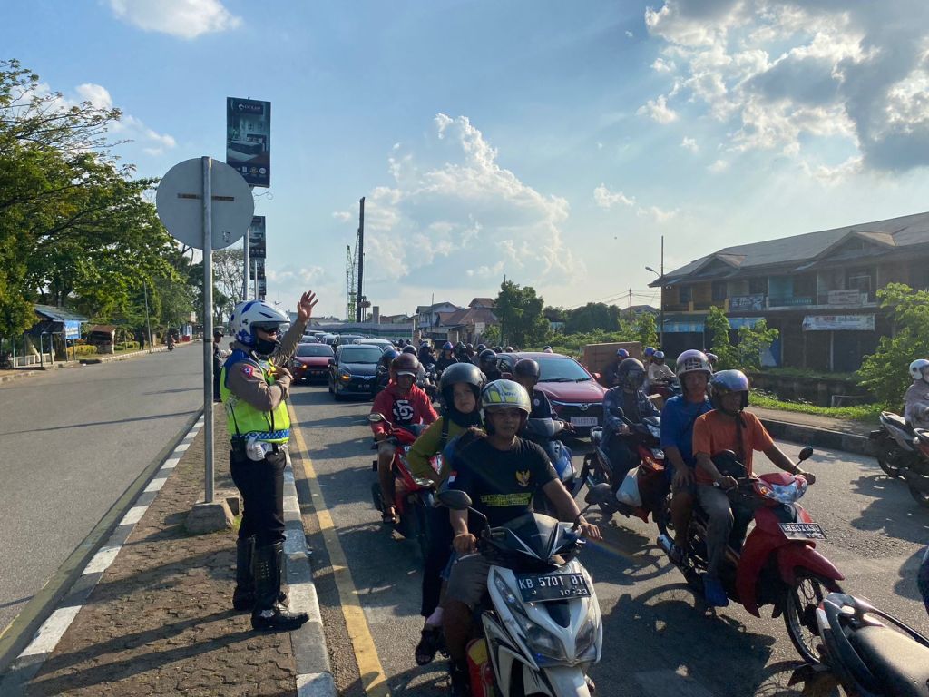 PONTIANAK, KALBAR – Personil Lantas Polsek Pontianak Timur selalu hadir ditengah-tengah masyarakat dengan memberikan pelayanan prima kepolisian, salah satunya dengan melakukan pengamanan dan pengaturan arus lalu lintas, demi kelancaran dan kenyamanan pengguna jalan serta meminimalisir terjadinya kecelakaan berlalu lintas. Sabtu (01/07/2023) Pukul 07.00 Wib.