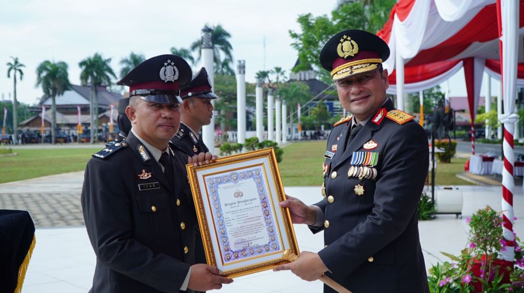 Setelah pelaksanaan Upacara, Kapolda Kalbar memberikan penghargaan kepada personel yang berprestasi berupa piagam penghargaan Kapolda Kalbar dan penyerahan hadiah perlombaan dalam rangka Hari Bhayangkara ke-77.