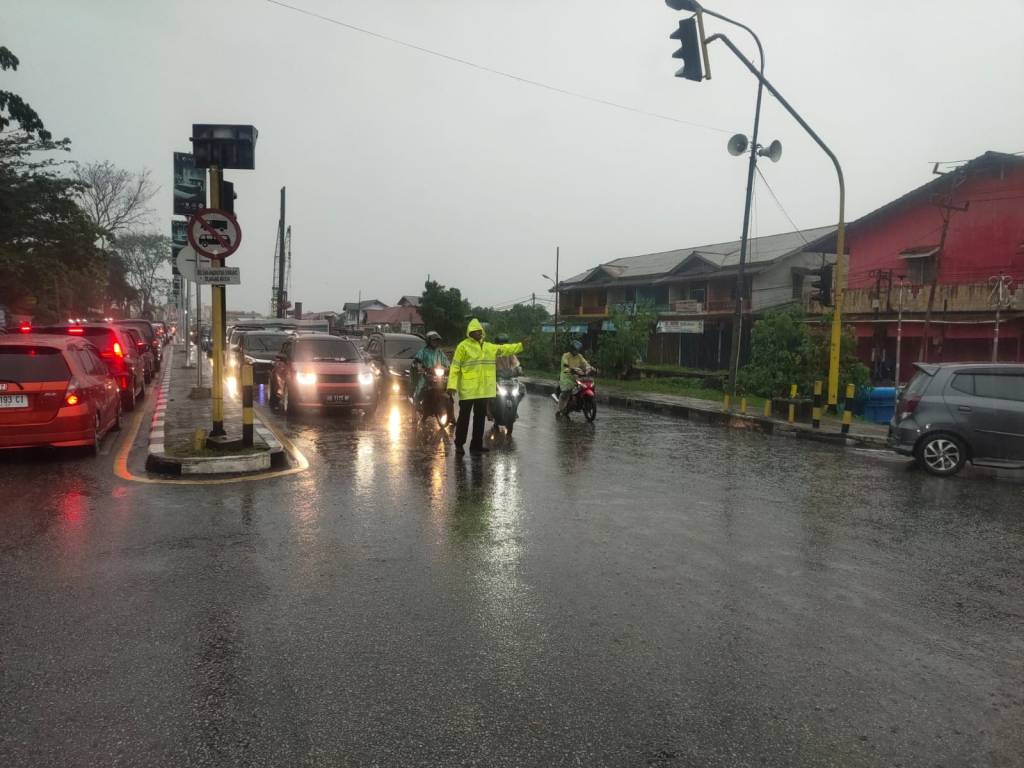 Pengaturan lalu lintas Sore hari ini meski hujan bukan jadi penghalang dan merupakan kegiatan yang rutin dilaksanakan oleh anggota Polsek Pontianak Timur dengan tujuan untuk memperlancar arus lalu lintas dan memberikan keamanan dan kenyamanan bagi pengguna jalan serta memberikan pelayanan menuju Polri yang Presisi.