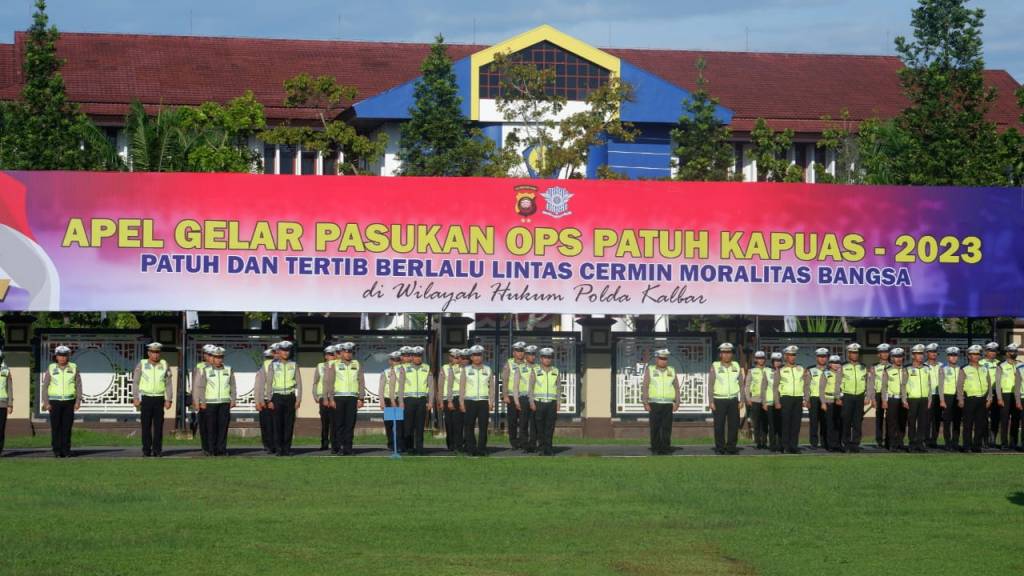 PONTIANAK, KALBAR – Kepala Kepolisian Daerah Kalimantan Barat Irjen Pol Pipit Rismanto memimpin apel gelar pasukan Operasi Patuh Kapuas 2023 di Lapangan Jananuraga Polda Kalbar, Senin 10 Juli 2023.