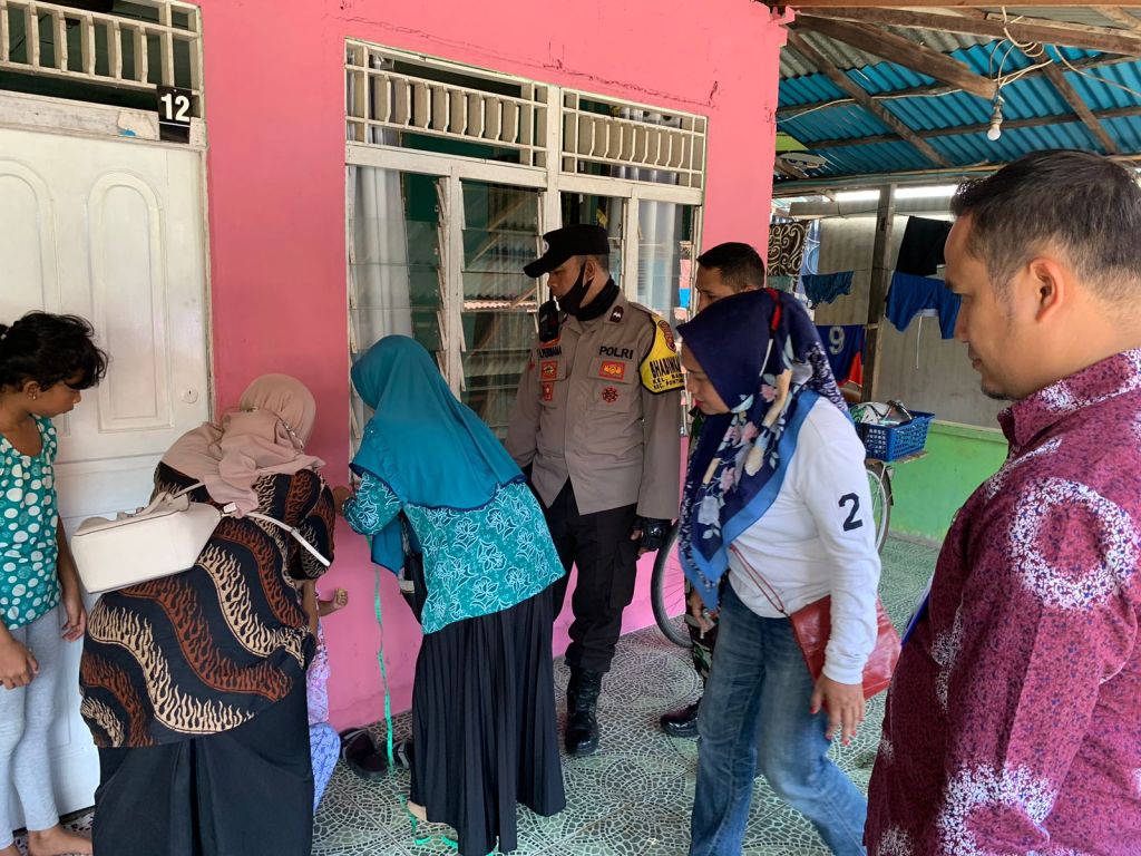 PONTIANAK – POLDA KALBAR, Bhabinkamtibmas Pontianak Selatan Aipda Atep Permana bersama. 3 PILAR berikan bantuan makanan kepada 16 anak terindikasi Stanting di Wilayah Kelurahan Bansir Laut Kecamatan Pontianak Tenggara pada hari Kamis, 13/07/2023