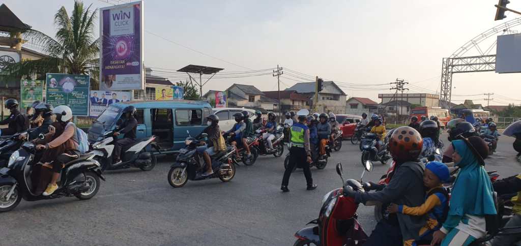 PONTIANAK, KALBAR – Personil Lantas Polsek Pontianak Timur selalu hadir ditengah-tengah masyarakat dengan memberikan pelayanan prima kepolisian, salah satunya dengan melakukan pengamanan dan pengaturan arus lalu lintas, demi kelancaran dan kenyamanan pengguna jalan serta meminimalisir terjadinya kecelakaan berlalu lintas. Jum’at (28/07/2023) Pukul 07.00 Wib.