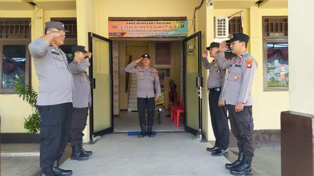 PONTIANAK, KALBAR – Dalam rangka memberikan pelayanan yang optimal kepada masyarakat dan pengamanan Mako Polsek Pontianak Timur, Anggota Jaga SPKT Dan Piket Fungsi melaksanakan serah terima tugas Penjagaan Secara Rutin di depan penjagaan Mapolsek Pontianak Timur, Sabtu (29/07/2023) Pukul 08.00 Wib.
