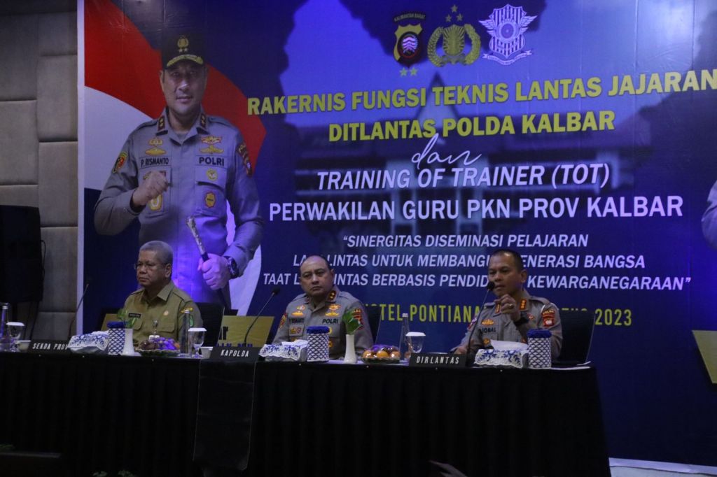 PONTIANAK, POLDA KALBAR – Kapolda Kalbar Irjen Pol Pipit Rismanto S.I.K., M.H., membuka secara resmi kegiatan Rakernis fungsi Lalu Lintas Jajaran Direktorat Lalu Lintas Polda Kalbar dan Training Of Trainer (TOT) Perwakilan Guru PKN Provinsi Kalbar, Senin (7/8).