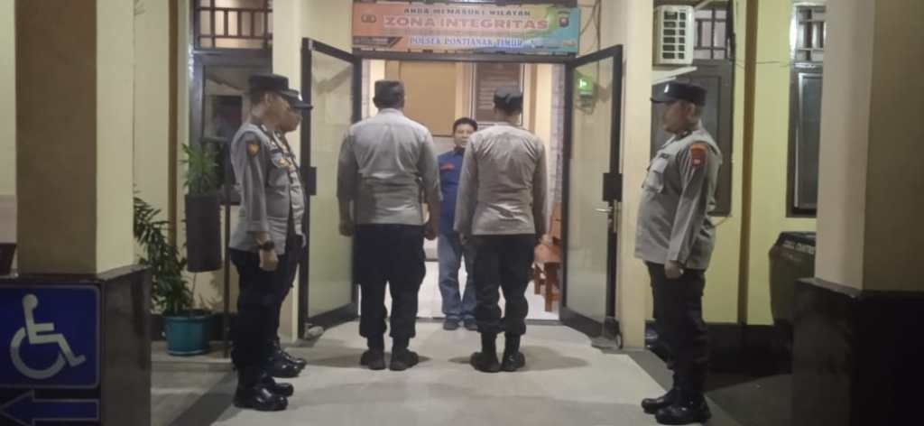 PONTIANAK, KALBAR – Dalam rangka memberikan pelayanan yang optimal kepada masyarakat dan pengamanan Mako Polsek Pontianak Timur, Anggota Jaga SPKT Dan Piket Fungsi melaksanakan serah terima tugas Penjagaan Secara Rutin di depan penjagaan Mapolsek Pontianak Timur, Jum’at (01/09/2023) Pukul 20.00 Wib.