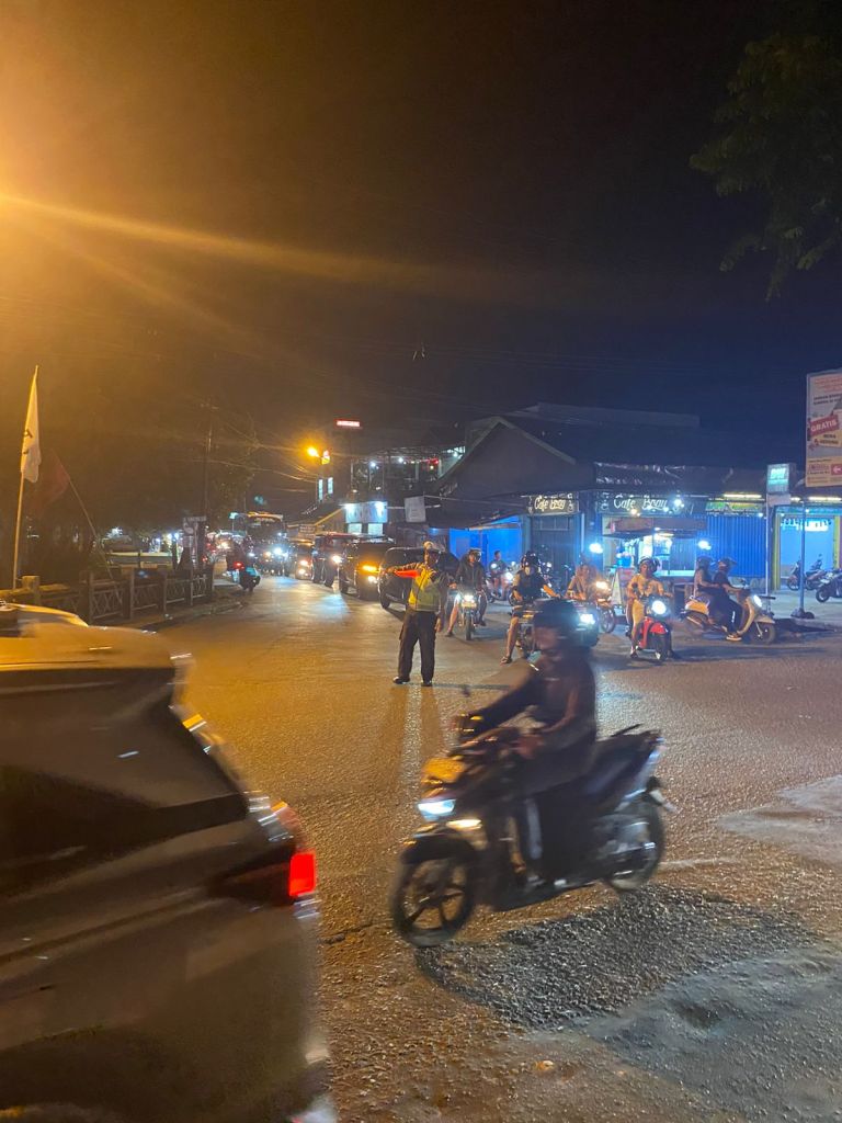 PONTIANAK, KALBAR – Kapolsek beserta Personil Lantas Polsek Pontianak Timur selalu hadir ditengah-tengah masyarakat dengan memberikan pelayanan prima kepolisian, salah satunya dengan melakukan pengamanan dan pengaturan arus lalu lintas, demi kelancaran dan kenyamanan pengguna jalan serta meminimalisir terjadinya kecelakaan berlalu lintas, Jum’at (22/09/2023) Pukul 20.30 Wib.