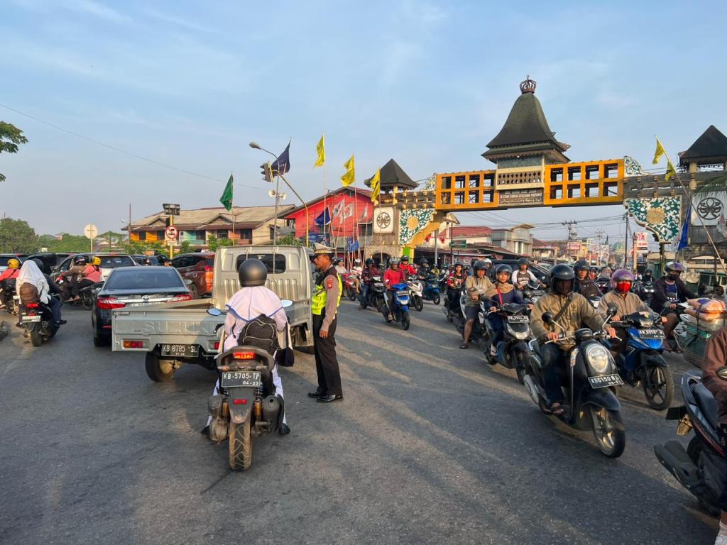 PONTIANAK, KALBAR – Kapolsek beserta Personil Lantas Polsek Pontianak Timur selalu hadir ditengah-tengah masyarakat dengan memberikan pelayanan prima kepolisian, salah satunya dengan melakukan pengamanan dan pengaturan arus lalu lintas, demi kelancaran dan kenyamanan pengguna jalan serta meminimalisir terjadinya kecelakaan berlalu lintas,, Senin (25/09/2023) Pukul 06.15 Wib.