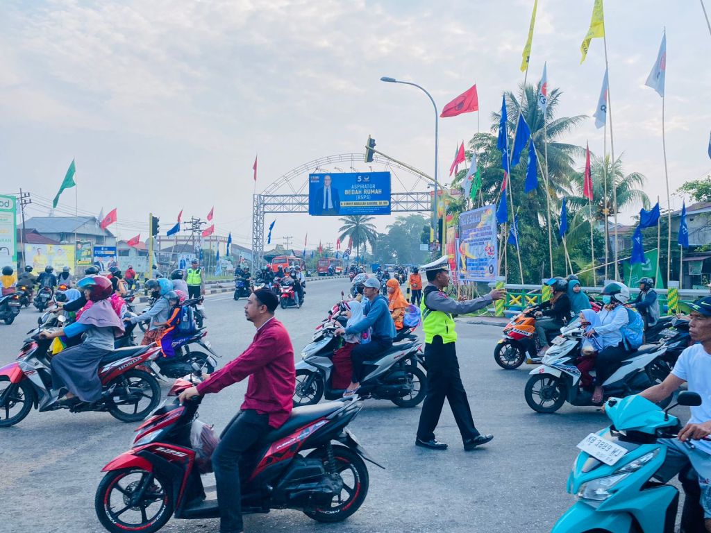 Diharapkan dengan ada giat Pengaturan Lalu lintas di pagi hari ini agar terciptanya Kamseltibcar Lantas dan mengantisipasi terjadinya Laka Lantas serta masyarakat yang melaksanakan aktivitas sore hari yang di jalanan selalu berhati hati dan mematuhi peraturan lalu lintas dalam berkendara, sehingga tidak terjadi kemacetan maupun kecelakaan lalu lintas.” Ujar Kapolsek