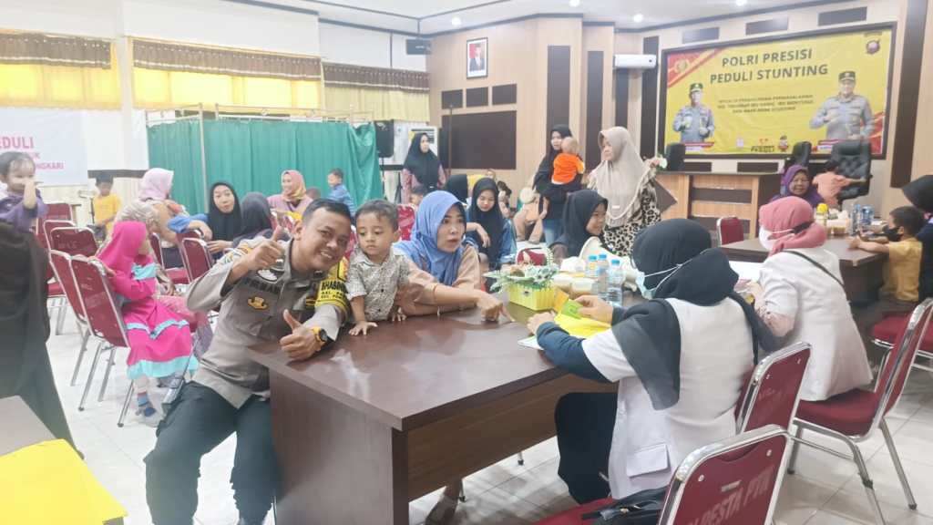 PONTIANAK, KALBAR – Bhabinkamtibmas Polsek Pontianak Timur, melaksanakan kegiatan pendampingan monitoring balita soal cegah stunting bersama Tim Kesehatan di Aula Polresta Pontianak, Jum’at (06/10/2023).