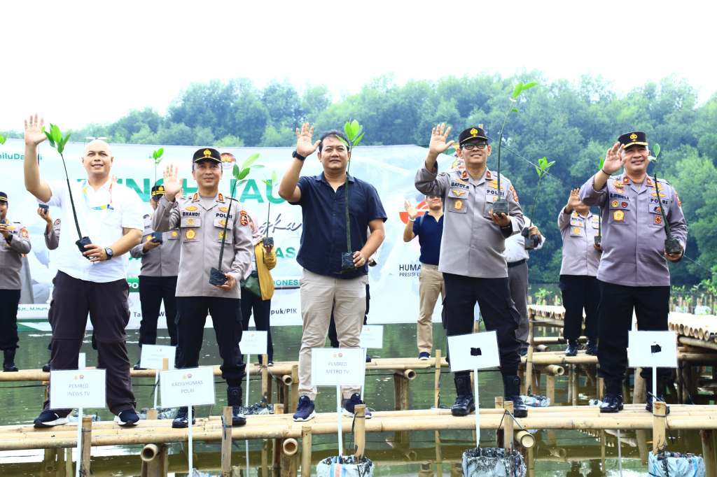 Jakarta. Divisi Humas Polri melakukan penanaman mangrove di Taman Wisata Muara Angke, Jakarta Utara. Penanaman mangrove tersebut dalam rangka memperingati Hari Ulang Tahun (HUT) ke-72 Humas Polri.