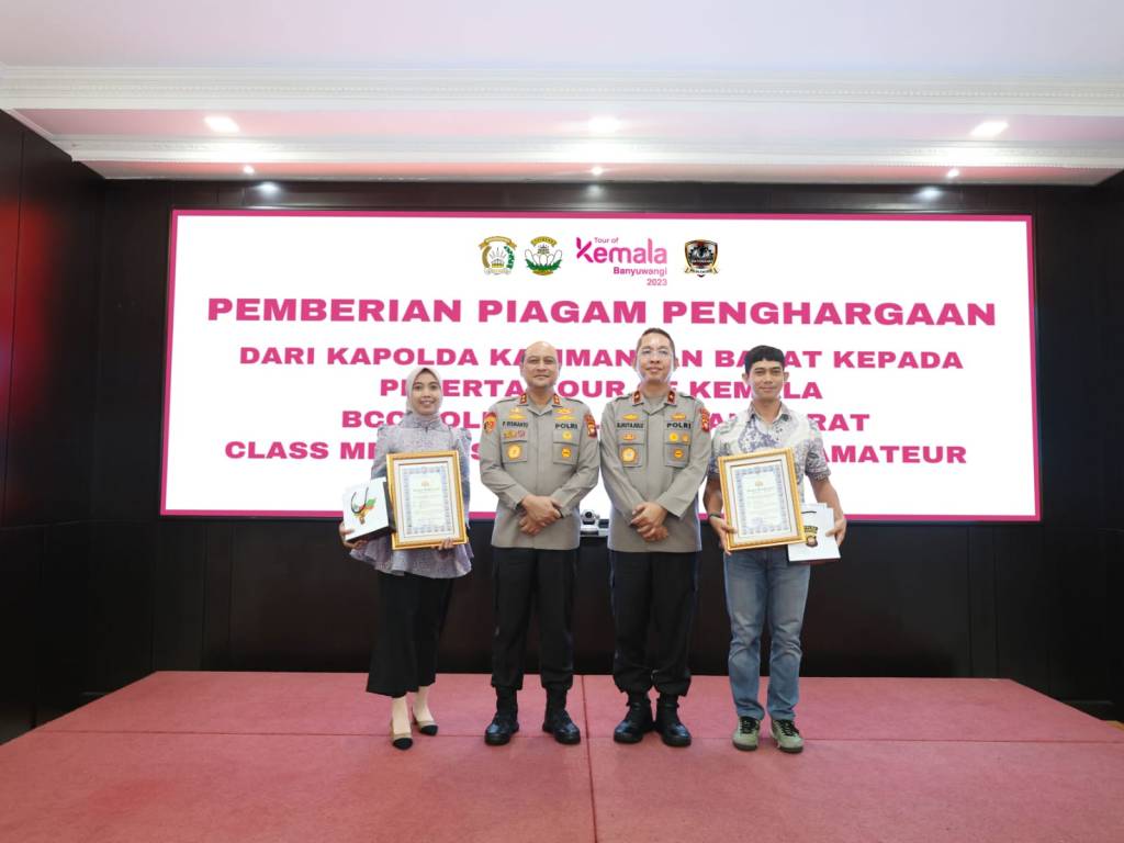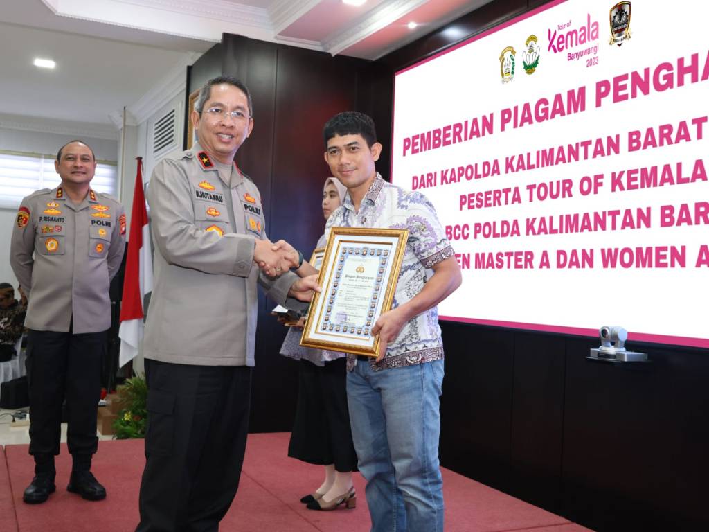 “Penghargaan ini sebagai rasa terimakasih dan kebanggaan kita semua atas keberhasilan atlet sepeda Kalbar di ajang Tour Of Kemala Banyuwangi 2023 yang dilaksanakan tanggal 7 dan 8 Oktober 2023 di Banyuwangi”, kata Kapolda Kalbar.