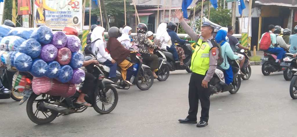 PONTIANAK, KALBAR – Kanit Lantas beserta Personil Lantas Polsek Pontianak Timur selalu hadir ditengah-tengah masyarakat dengan memberikan pelayanan prima kepolisian, salah satunya dengan melakukan pengamanan dan pengaturan arus lalu lintas, demi kelancaran dan kenyamanan pengguna jalan serta meminimalisir terjadinya kecelakaan berlalu lintas, Senin (17/10/2023) Pukul 06.10 Wib.