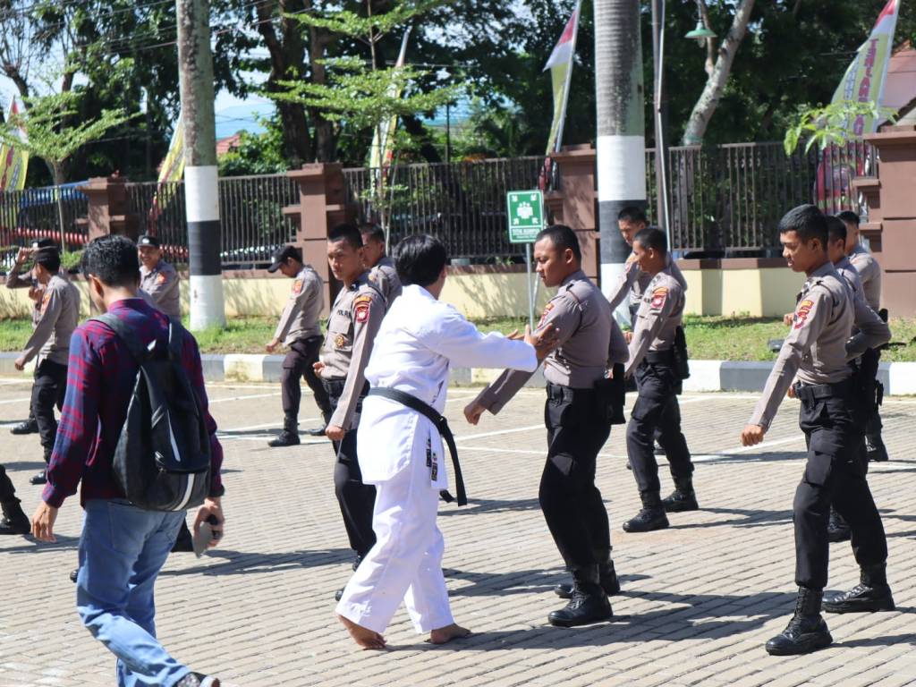 Tidak hanya latihan beladiri,tetapi latihan kemampuan pengendali masa juga akan kita latihkan,harapan kami dengan berbekal kemampuan dari latihan ini seluruh personel akan semakin mahir dan profesional dalam melaksanakan tugasnya.Sambung sukma Pranata.