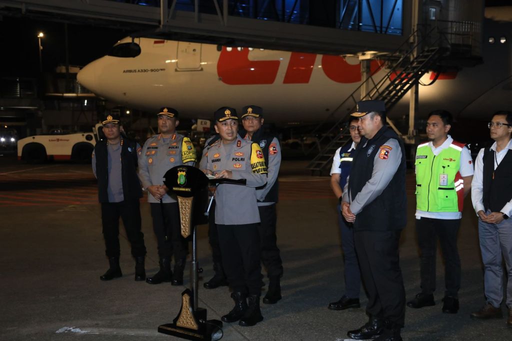 “Kenapa berangkatnya berbeda? Karena diatur keberangkatannya agar ketibaannya bersamaan di Bandara El Aris besok pagi pukul 07.00 waktu setempat,” ungkap Kadiv Hubinter.