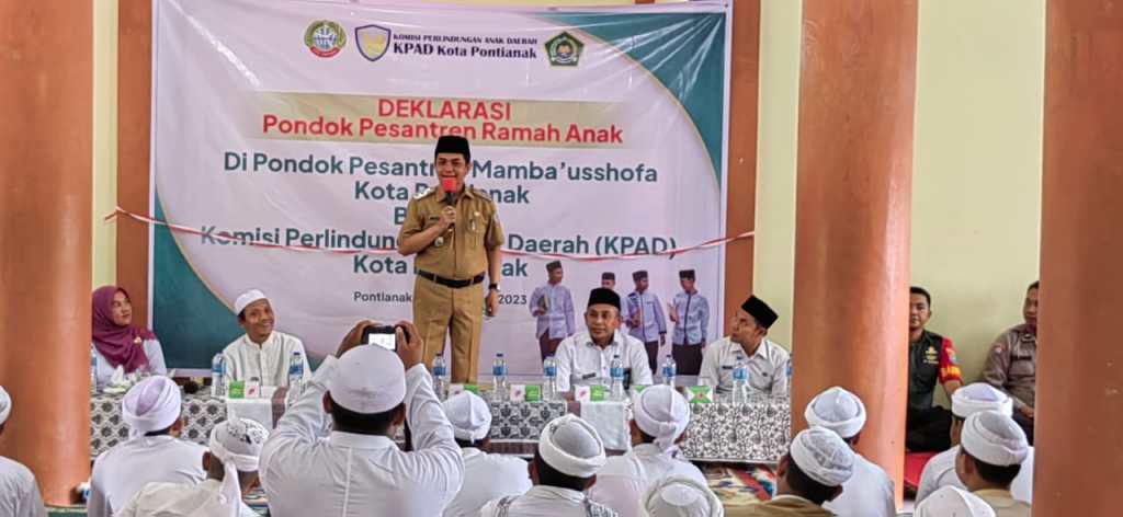 – Alhmdulilah puji syukur kepada Allah SWT hari ini Selasa 14 November 2023 KPAD Kota Pontianak mendklarasikan deklarasi ramah anak kami membuat kegiatan ini merupakan lembaga perlindungan anak yang menjadi tugas kami, yang menjadi fungsi pengawasan pondok Pesantren.