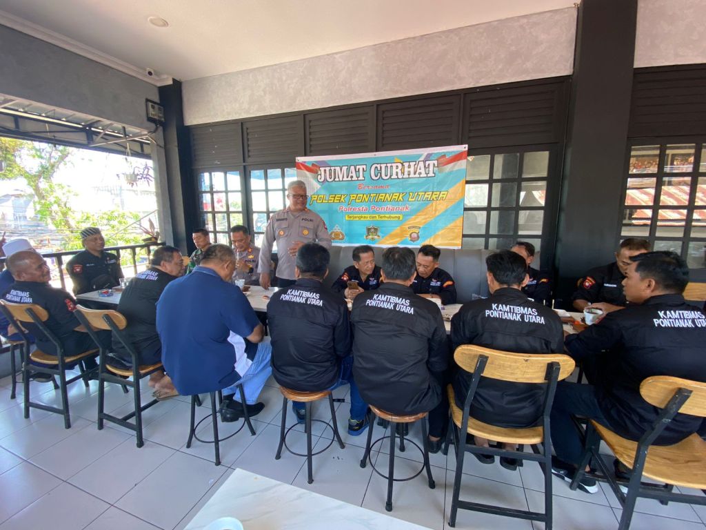 Kegiatan Jumat Curhat diadakan di Aming Coffee, yang terletak di Jl. Gusti Situt Mahmud Kel. Siantan Hulu Kec. Pontianak Utara pada Jumat, 17 November 2023. Acara ini dihadiri oleh personil Polresta Pontianak dan anggota Pokdar Kamtibmas.