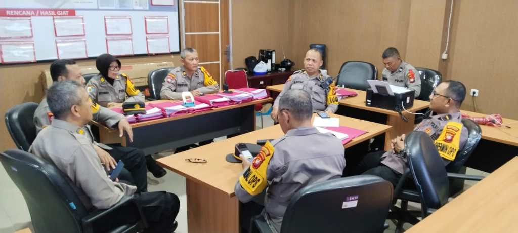 Polresta Pontianak, 26 November 2023 – Dalam rangka memastikan keberlanjutan pengamanan jelang Pemilihan Umum 2024, Kaposko Ops Mantap Brata 2023-2024 Polresta Pontianak, bersama stafnya, melaksanakan Analisis Evaluasi (Anev) Mingguan. Kegiatan ini dilakukan untuk mengevaluasi perkembangan hasil kinerja personil di lapangan terkait upaya pengamanan Pemilu 2024 di Kota Pontianak.