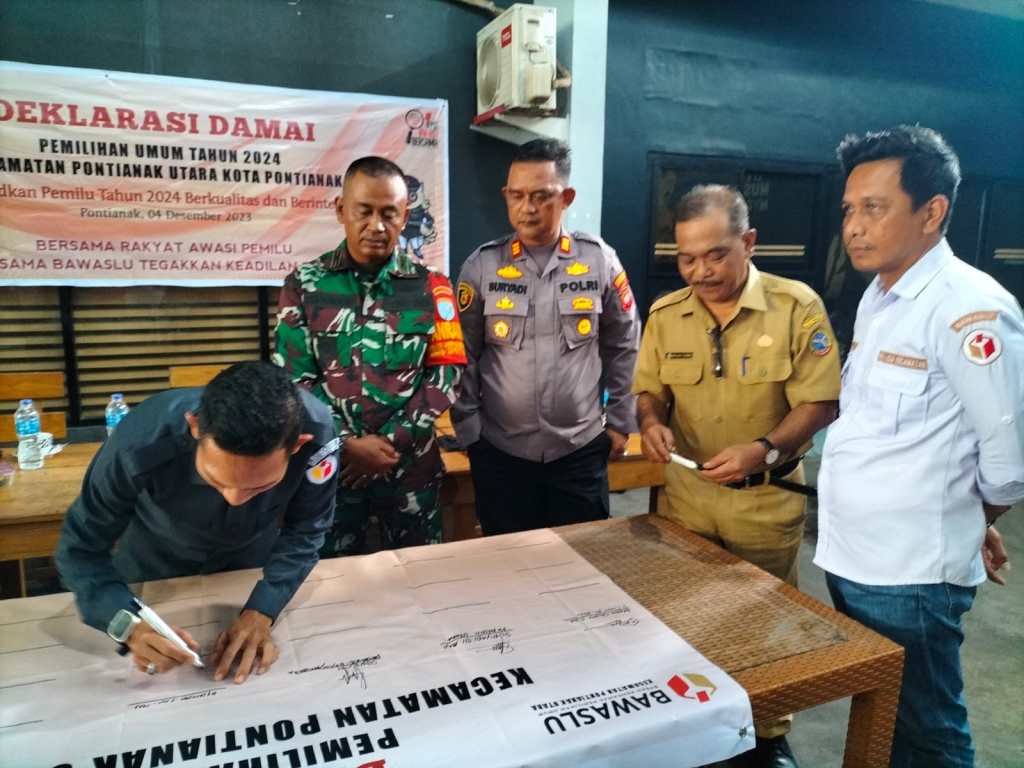 Acara ditutup dengan penandatanganan deklarasi damai oleh Kapolsek Pontianak Utara dan perwakilan dari berbagai elemen masyarakat yang hadir, menegaskan komitmen bersama untuk menjalani proses pemilihan yang demokratis, aman, dan bermartabat.