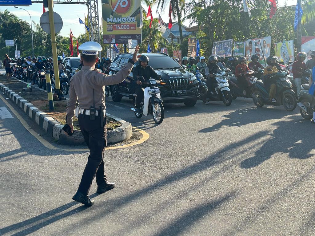 PONTIANAK, KALBAR – Personil Lantas Polsek Pontianak Timur selalu hadir ditengah-tengah masyarakat dengan memberikan pelayanan prima kepolisian, salah satunya dengan melakukan pengamanan dan pengaturan arus lalu lintas, demi kelancaran dan kenyamanan pengguna jalan serta meminimalisir terjadinya kecelakaan berlalu lintas, Senin (12/12/2023) Pukul 06.10 Wib.