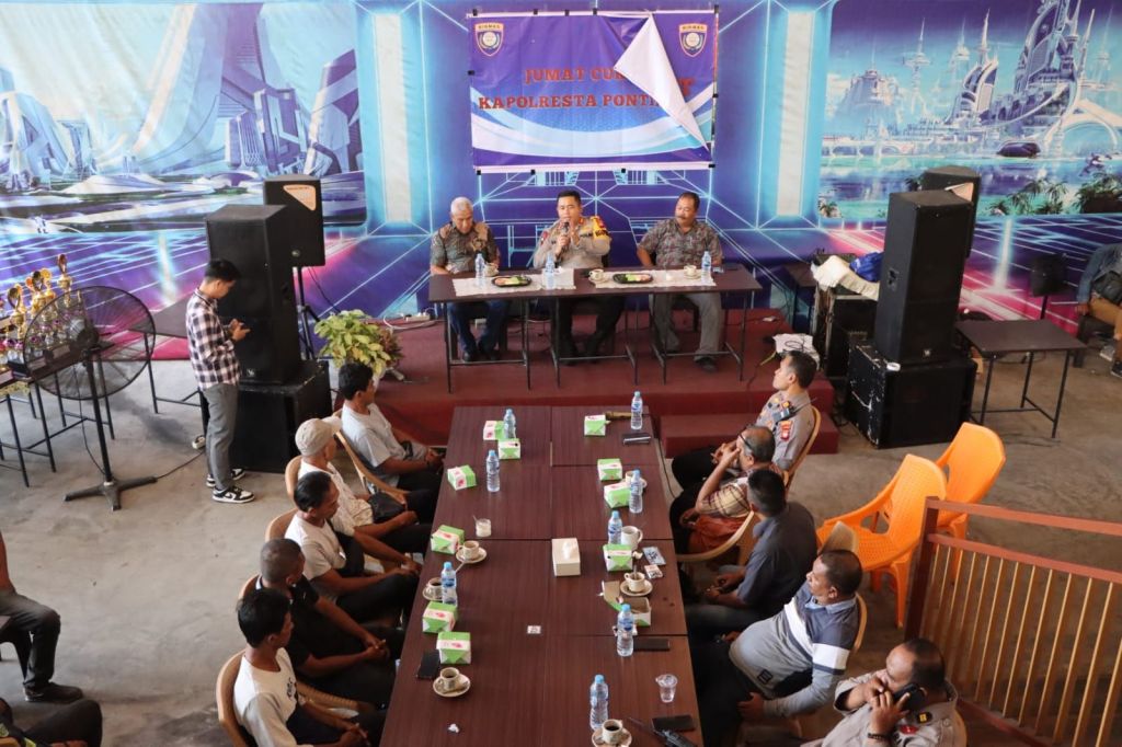 Polresta Pontianak, – Wakapolresta Pontianak, AKBP N.B Darma. S.I.K., M.H., memimpin kegiatan Jumat Curhat Bersama Tenaga Kerja Bongkar Muat (TKBM) di Kawasan Pelabuhan Dwikora Pontianak. Acara berlangsung di Warkop Pelabuhan Dwikora Pontianak pada Jumat, 22 Desember 2023, pukul 09.30 WIB.