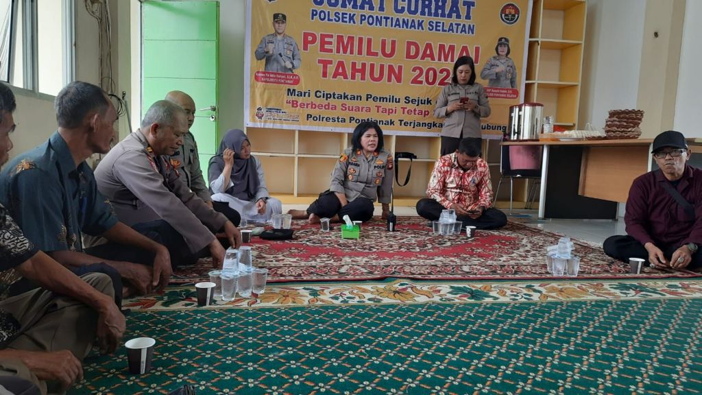 Polresta Pontianak, 23 Desember 2023 – Bertempat di Pos BKPM Pasar Tradisional Flamboyan, Jalan Gajah Mada, Kelurahan Benua Melayu Darat, Kecamatan Pontianak Selatan, telah dilaksanakan kegiatan “Jum’at Curhat” oleh Polsek Pontianak Selatan. Kegiatan ini merupakan bagian dari upaya menjaga ketertiban dan keamanan masyarakat, khususnya dalam menyambut Pemilu Damai Tahun 2024.