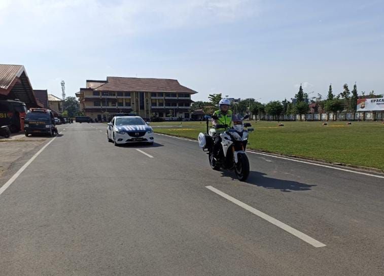 Pontianak, Polda Kalbar – Subsatgas Kawal Kamseltibcarlantas OMB 2024 Polda Kalimantan Barat menggelar latihan pengawalan dengan kendaraan motor dan mobil di lapangan Jananuraga Polda Kalbar, Senin (15/1/2024).