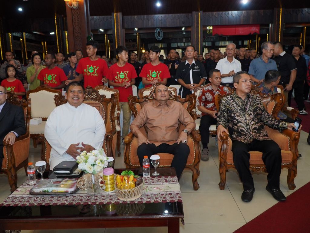 Pontianak,Polda Kalbar – Perayaan Natal Ouikumene Polda Kalbar berlangsung meriah di Pendopo Gubernur Provinsi Kalimantan Barat pada hari Senin (15/01), didahului dengan ibadah Natal yang diikuti oleh umat kristiani personel polda Kalbar dan dilanjutkan dengan acara perayaan yang dihadiri oleh Kapolda Kalbar beserta seluruh pejabat utama polda Kalbar.