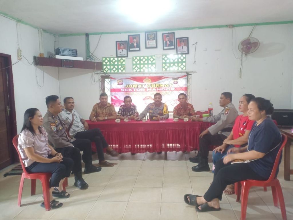 Polres Landak – Mandor, Polsek Mandor menggelar Jumat Curhat program ini merupakan sarana untuk menampung seluruh aspirasi masyarakat diharapkan dengan melalui Jumat Curhat yang digelar rutin ini dapat menekan gangguan Kamtibmas di Kecamatan Mandor.