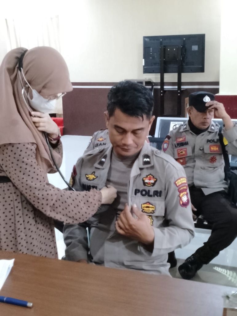 “Pengecekan kesehatan ini meliputi pemeriksaan secara fisik dan keluhan kesehatan lainnya Dan hasil dari pengecekan ini akan menjadi acuan bagi kami dalam menentukan kelayakan personel untuk melaksanakan tugas pengamanan TPS dan pengawalan logistik pemilu” Tambahnya.