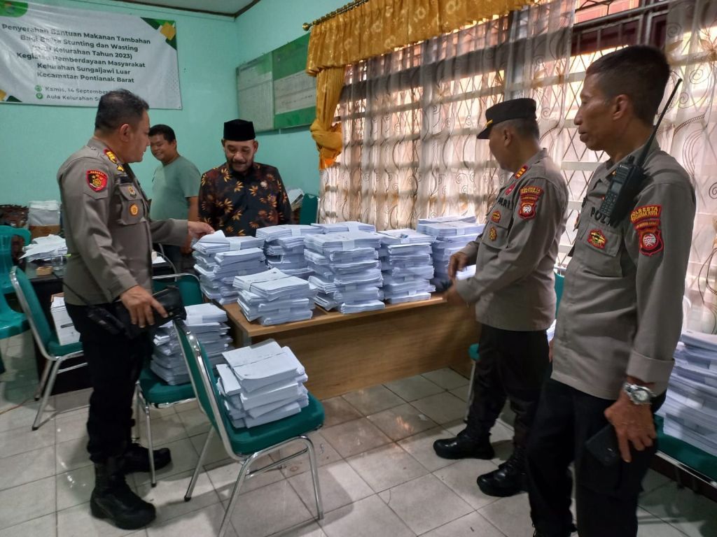 Pontianak, 8 Februari 2024 – Pada hari Rabu siang di Kantor Sekretariat PPS Kelurahan Pontianak Barat, Kecamatan Pontianak Barat, berlangsung kegiatan penting yang melibatkan personil Polresta Pontianak. Mereka melaksanakan kegiatan pengecekan logistik untuk Pemilu 2024, khususnya perlengkapan pendukung Tempat Pemungutan Suara (TPS). (7/2/2024).