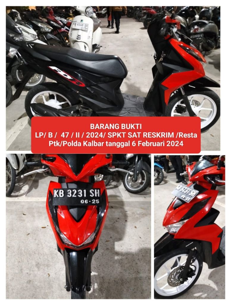 Dan setelah dilakukan interogasi ternyata benar sesuai dengan petunjuk dari rekaman CCTV yang beredar dimedia sosial beberapa waktu yang lalu dialah terduga pelaku,kemudian pelaku bersama barang bukti satu unit sepeda motor Honda beat mil milik korban kami bawa kepolresta Pontianak untuk proses selanjutnya.