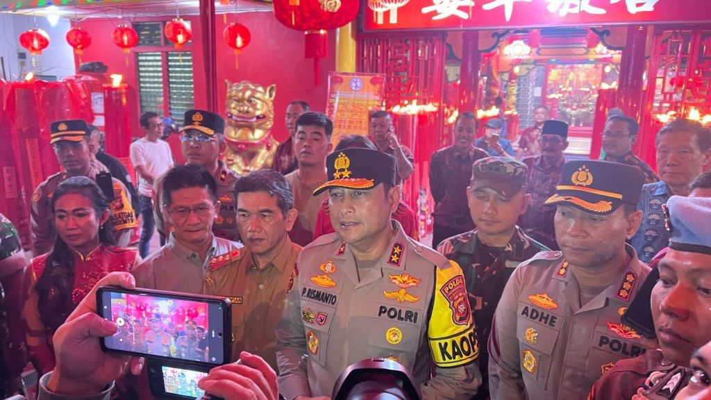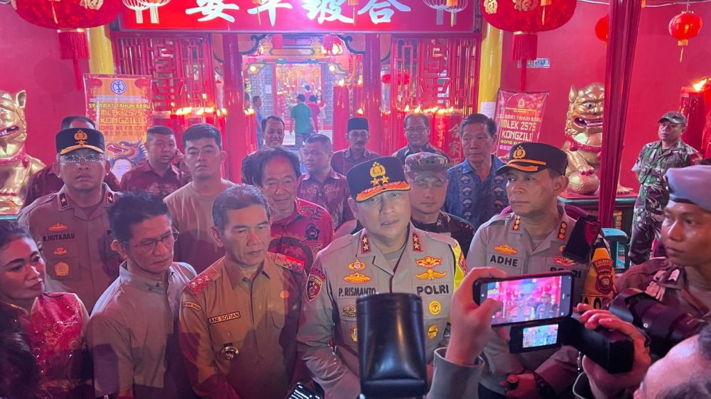 Pontianak, 10 Februari 2024 – Kapolda Kalimantan Barat (Kalbar) beserta Pejabat Pj Walikota Pontianak dan Kapolresta Pontianak melakukan peninjauan langsung terhadap pengamanan di Klenteng Kwan Tie Bio dan Klenteng Bhodisatva Karaniya Metta Kapuas Indah. Kegiatan peninjauan ini bertujuan untuk memastikan kelancaran serta keamanan dalam pelaksanaan ibadah sembahyang menjelang perayaan Tahun Baru Imlek.(9/2/2024).