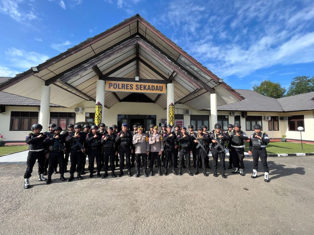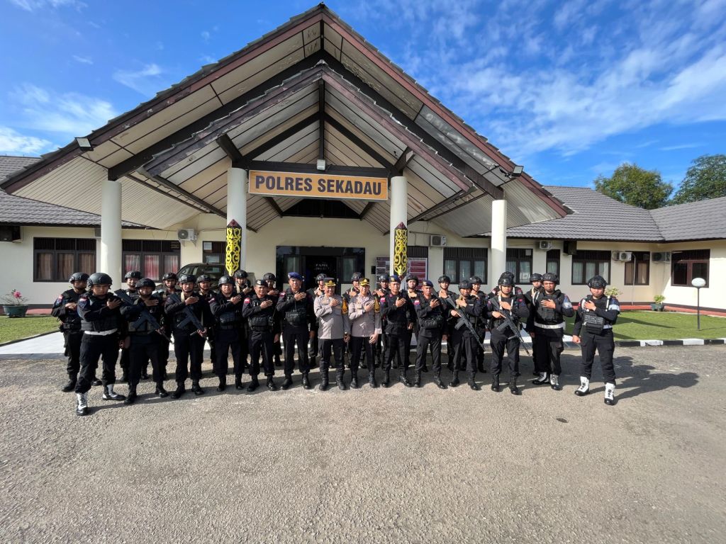 SEKADAU, Polda Kalbar – Kapolres Sekadau AKBP Dr. I Nyoman Sudama, S.I.K., M.Si, melepas kepulangan personel Bawah Kendali Operasi (BKO) Sat Brimob Polda Kalbar, dalam rangka Operasi Mantap Brata Kapuas, dalam pelaksanaan pengamanan tahapan pemungutan dan penghitungan suara Pemilu 2024 di wilayah hukum Polres Sekadau.