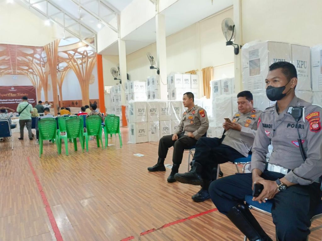Aparat Kepolisian dari Polresta Pontianak tampak disiagakan dilokasi kegiatan untuk mengamankan jalannya Rapat pleno rekapitulasi hasil Pemilu 2024,terlihat beberapa warga yang datang dilakukan pemeriksaan barang bawaan untuk mengantisipasi hal – hal yang tidak diinginkan kata salah seorang petugas Kepolisian yang melakukan pengamanan.