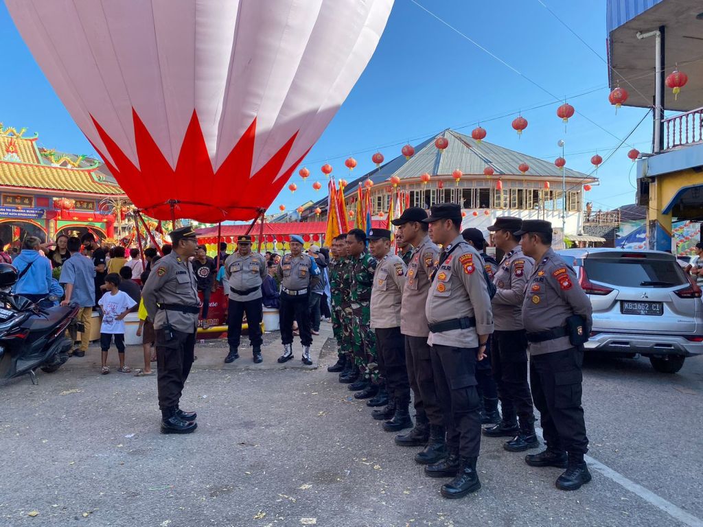 SINGKAWANG, Polda Kalbar- Polres Singkawang, Untuk memberikan rasa aman kepada masyarakat, Polres Singkawang melaksanakan kegiatan pengamanan dalam kegiatan Cap Go Meh, Kegiatan ini dilakukan untuk memastikan kelancaran acara dan keamanan para peserta serta pengunjung yang menyaksikan Kegiatan tersebut, Kegiatan Pengamanan tersebut melibatkan Personil kepolisian dari berbagai satuan, serta dibantu oleh petugas dari instansi terkait lainnya seperti TNI, Dishub dan Satpol PP Kota Singkawang, Sabtu (24/2/2024)