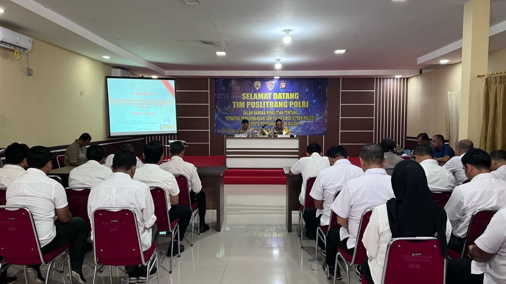 Pontianak, Polda Kalbar Tim Puslitbang Polri dalam rangka penelitian tentang “Strategi Pengembangan SDM Polri Siber (Cyber Police)”yang dilaksanakan di ruang Aula Polresta Pontianak (29/02/2024)