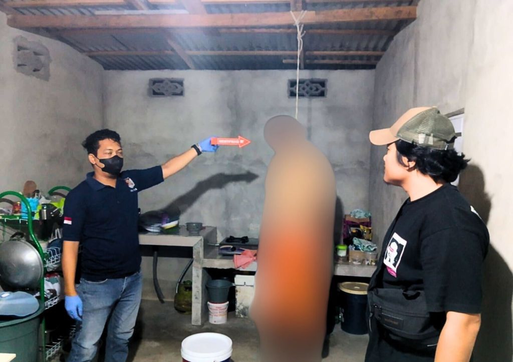 Sebelum kejadian korban sempat tidur bersama istrinya, namun saat istrinya terbangun sekitar Pukul 21.21 Wib korban tidak berada disisinya. Istrinya pun keluar dari kamar dan mencari suaminya tersebut, teriakan histeris pun tak tertahan setelah istri korban menemukan suaminya tewas dalam keadaan tergantung dengan seutas tali tambang di dapur rumahnya.