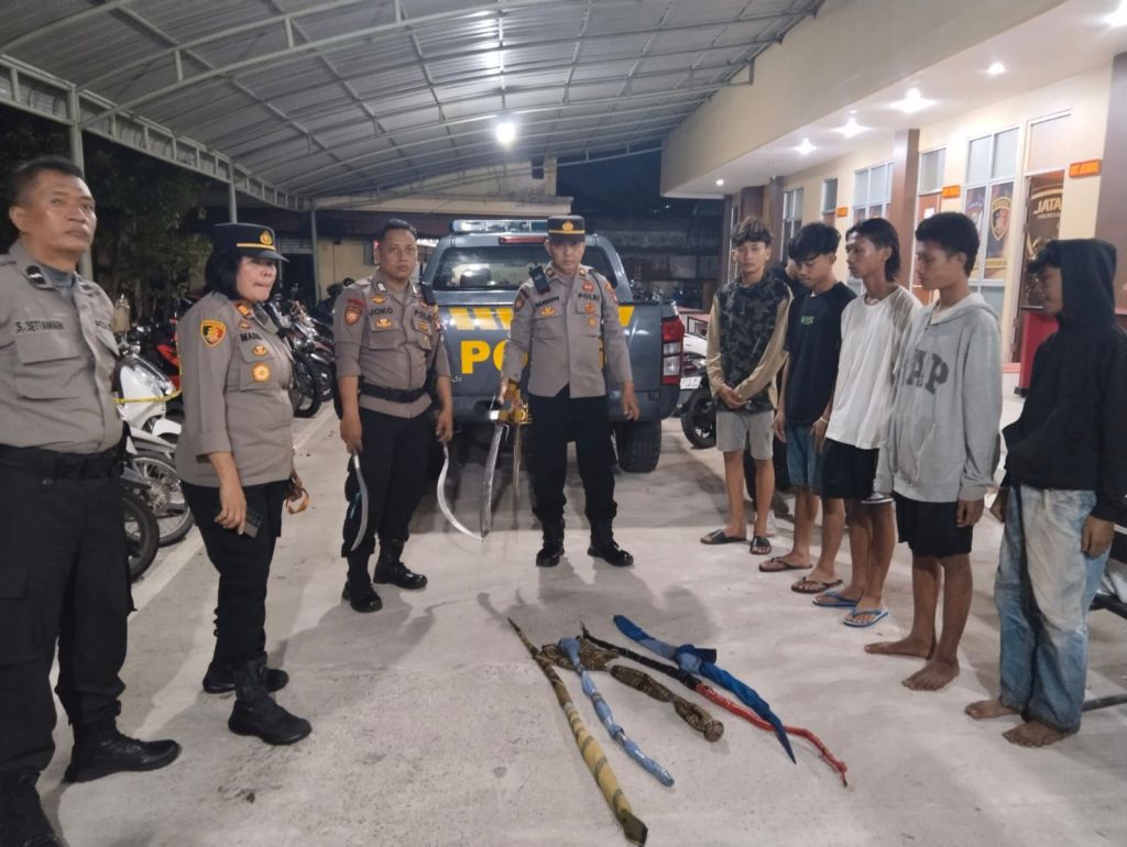 “Awalnya kami melaksanakan patroli rutin, kemudian kami menerima laporan dari warga bahwa ada kejadian perang sarung di daerah Parit Demang. Setelah kami datangi, kami berhasil mengamankan 5 orang pelaku dengan barang bukti sarung dan kami temukan juga senjata tajam”, ungkap AKP Dumaria Silalahi, S.H.