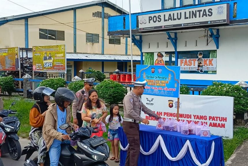 _*POLRES MELAWI, POLDA KALBAR*_ – Satuan Lalu Lintas Polres Melawi telah melaksanakan kegiatan pembagian takjil gratis kepada pengguna jalan di seputaran Jalan Juang Nanga Pinoh. Takjil yang dibagikan kepada masyarakat pengguna jalan berupa snack dan minuman untuk bebuka puasa, sebagai bentuk kepedulian terhadap masyarakat selama bulan penuh berkah ini. Kamis (14/3/2024) sore.