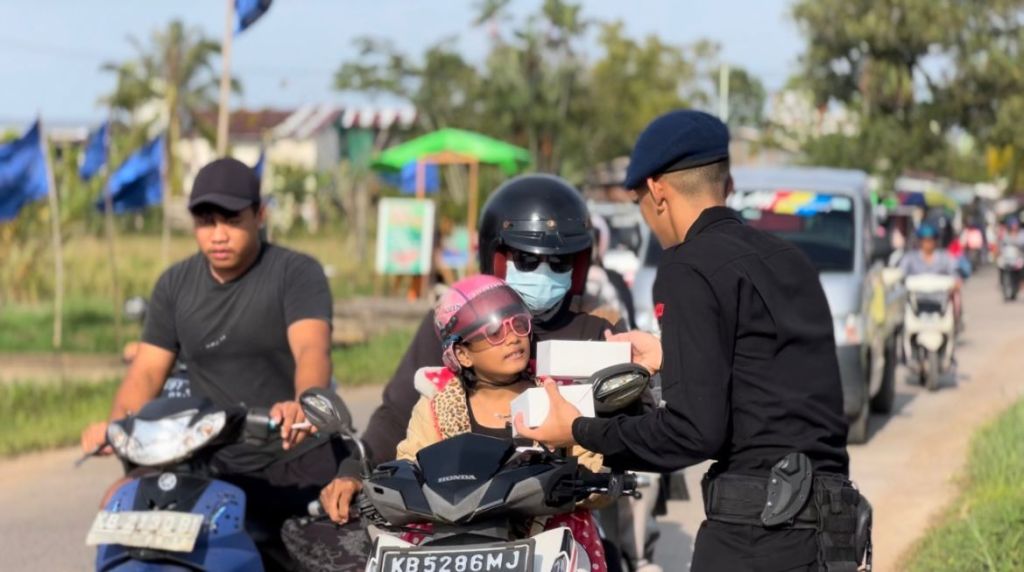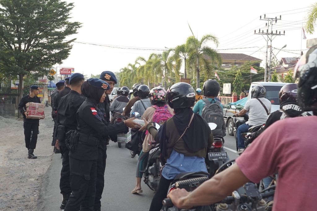 Satbrimob Polda Kalbar kembali melaksanakan kegiatan Jum’at Berkah dengan membagikan takjil kepada masyarakat pengguna jalan. Sabtu (16/03/24).