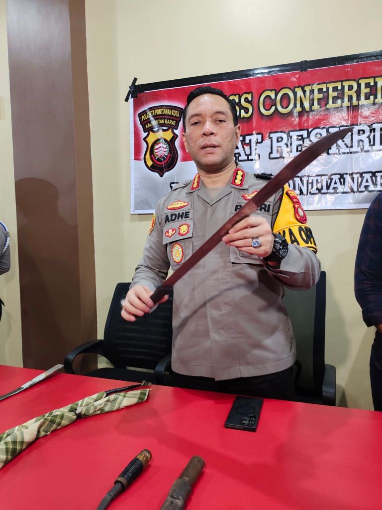 Kapolresta Pontianak Kombes Pol Adhe Hariadi, S.I.K, MH dalam keterangannya dihadapan awak media minggu (17/3/2024) 05.00 wib pagi menjelaskan,”Kami Polresta Pontianak menanggapi keresahan masyarakat akibat adanya penyerangan yang dilakukan oleh sejumlah anak remaja dengan membawa senjata tajam disejumlah tempat dipontianak dengan mengamankan sejumlah pelaku yang diduga turut dalam aksi tersebut.”Ungkapnya.
